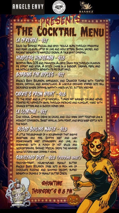 Tired of the same old drinks? Bitter & Twisted is here to inspire you and bring a sense of excitement and adventure to your next night out. With our extensive book o' cocktails, you'll find a diverse collection of new and classic drinks from around the world, all expertly crafted using only the finest premium spirits, fresh fruits, herbs, bitters, and tonics.