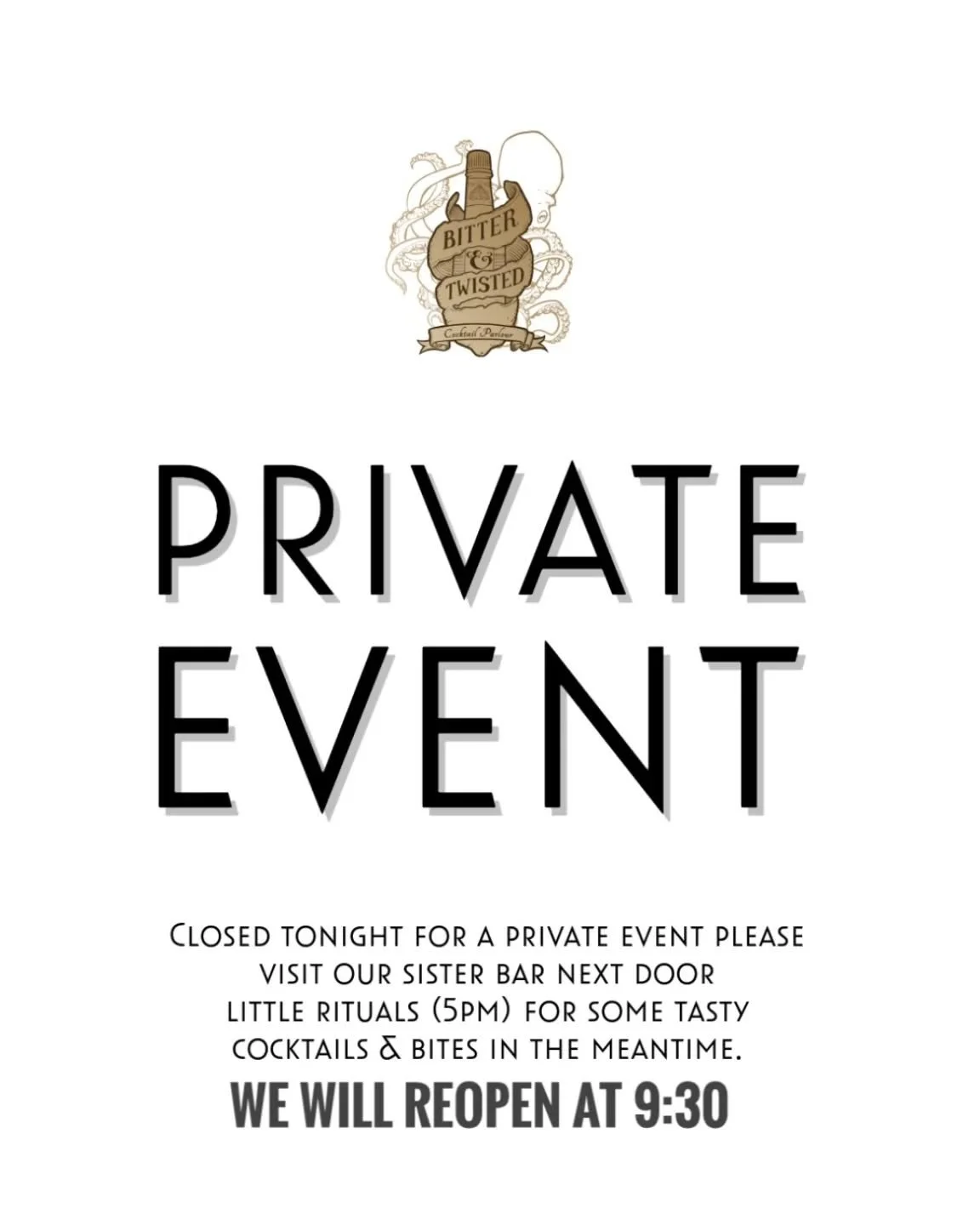 Bitter & Twisted is a seated establishment, and while we do try to accommodate everyone we are bound by our legal capacity. We're not trying to be cool but sadly we have limited space, and we just can’t think of a better and fairer system than first come, first served, especially during peak times.