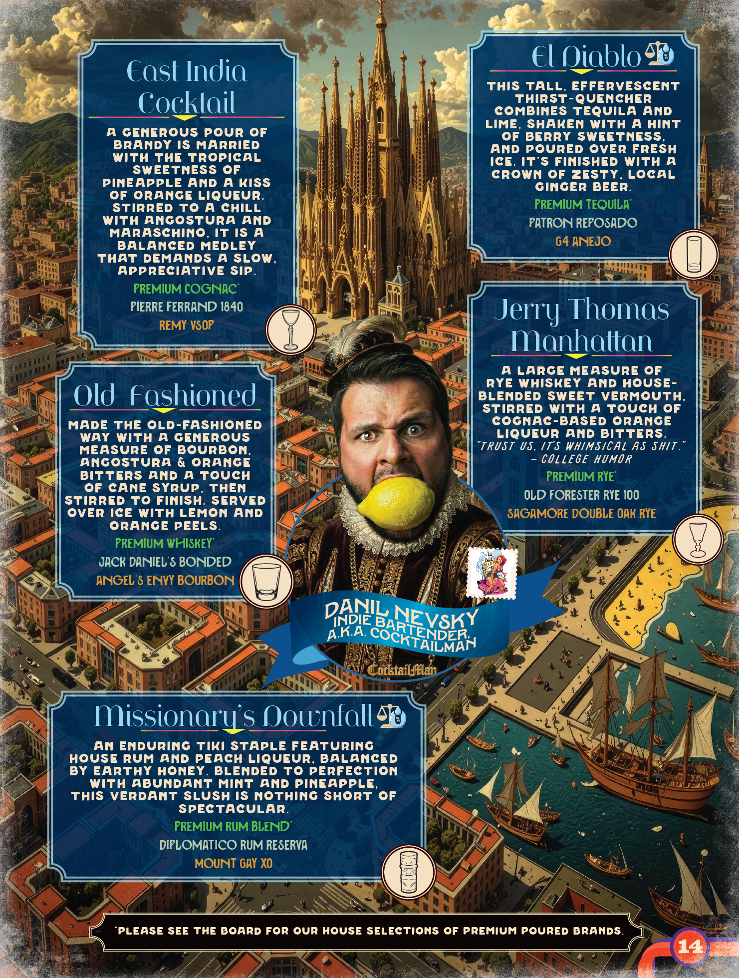 Below is our brand-new cocktail menu. Printed menus will be back shortly; we’re just dealing with a small supply-delay hiccup. Expect them very soon. In the meantime, enjoy!