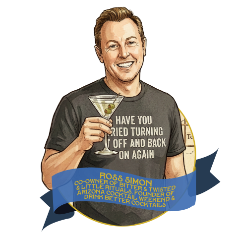 This yearβs menu is inspired by travel. Along the way, friends from around the world shared their favorite places to eat and drink in their cities, creating a mini global travel guide. This one next to me is from the Bitter & Twisted team, a short, unordered list of a few of our favorite spots around Arizona & Phoenix for cocktails, bites and sites. Great if you're just visiting the city for the first time.
